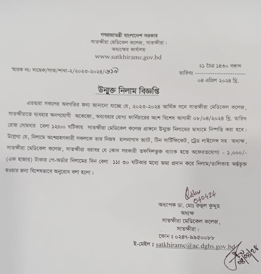 উন্মুক্ত নিলাম বিজ্ঞপ্তি এপ্রিল ২০২৪